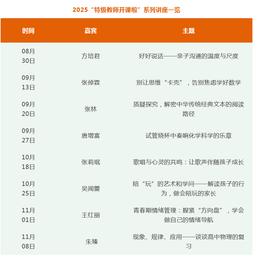 系列讲座由上海市特级教师、特级校长主讲,将围绕学生、家长、教师在成长和教育中的焦点和热点问题展开,旨在为学生健康、全面和快乐成长提供专业、权威的公益指导。