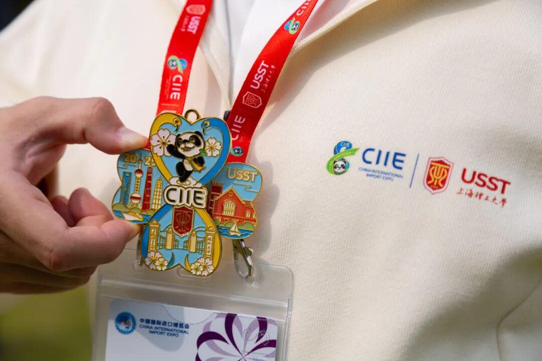 上海理工大学举行进博会志愿者出征仪式暨岗前培训。出征仪式上,学校为全体志愿者发放了精心准备的物资包,此次学校全面优化进博文创系列产品,为志愿者们送上祝福的同时,也叮嘱他们牢记“信义勤爱 思学志远”的校训精神,斗志昂扬出征。其中,上海理工大学进博会金属徽章的设计融合了学校历史建筑群、黄浦江畔、轮船等元素,寓意着上理学子胸怀世界、面向未来的开放格局与使命担当。
