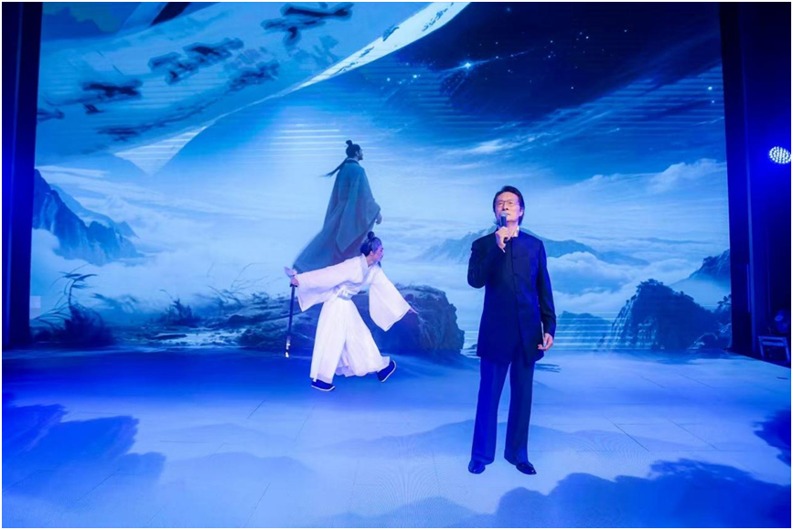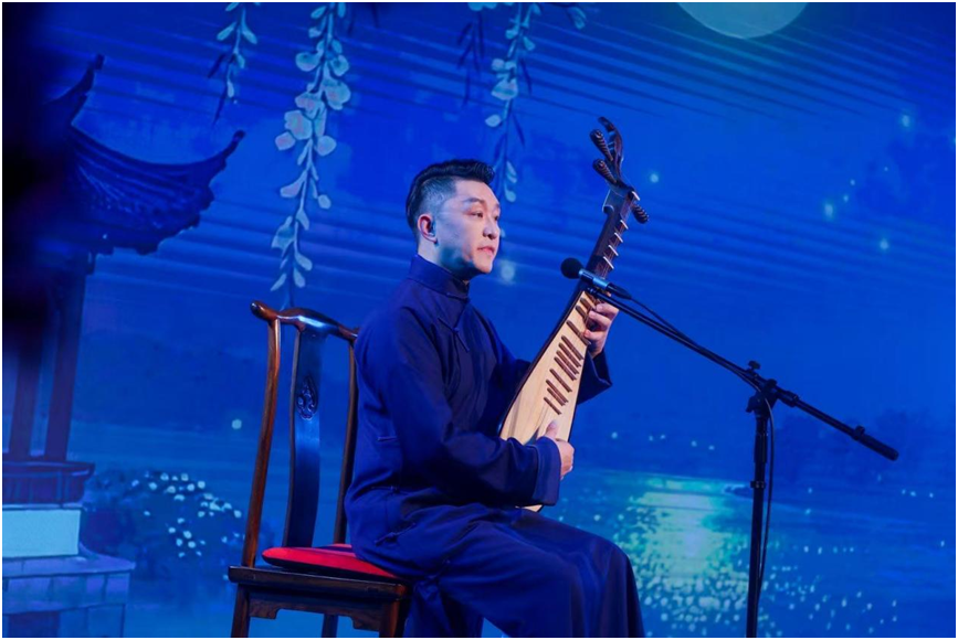 盛典中,传统与创新的碰撞尤为耀眼。唐代诗人张若虚的名作《春江花月夜》以“评弹+朗诵”的形式呈现,只见上海评弹团团长高博文手抱琵琶,声音婉转如江波荡漾;朗诵艺术家丁建华则以恢宏声线勾勒出“江畔何人初见月”的哲思苍穹。两种不同艺术形式的对话,让千年诗篇焕发新的生命力。