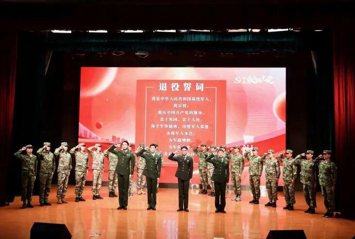 誓言铿锵,初心未改。在新时代的征程中,退役军人继续立足本职岗位,展风采立新功。“戎耀申城”老兵宣讲团成员江子豪作为领誓人,和本场的宣讲人,以及上海电机学院退役军人代表们一起重温退役誓词。