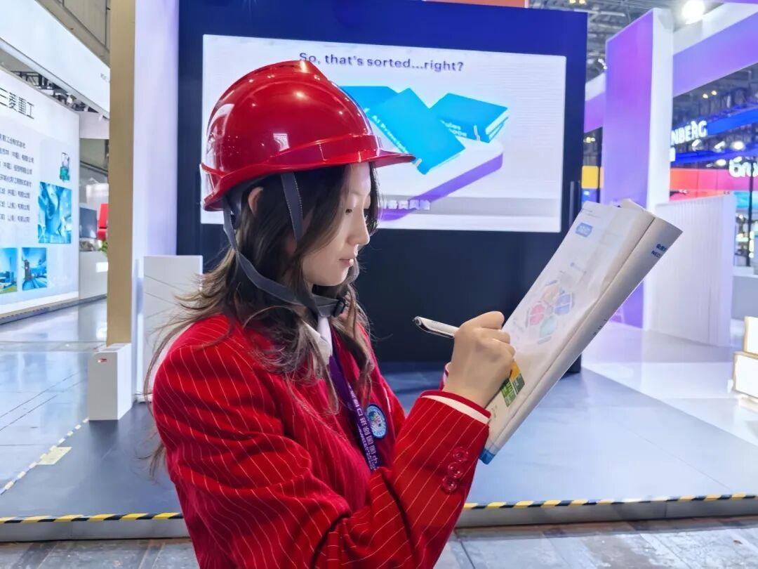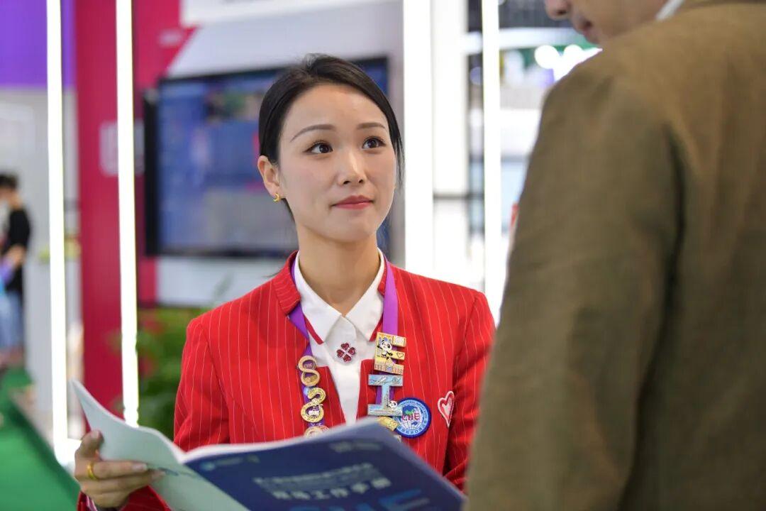 上海南湖职业技术学院的“小叶子”吴雨晗平日里是中共四大纪念馆的志愿讲解员。今年,首次参与进博会志愿服务的她化身南登录厅口的暖心使者,为中外客商指路答疑。她用声音传递温度,用专业服务展现中国青年的风采。
