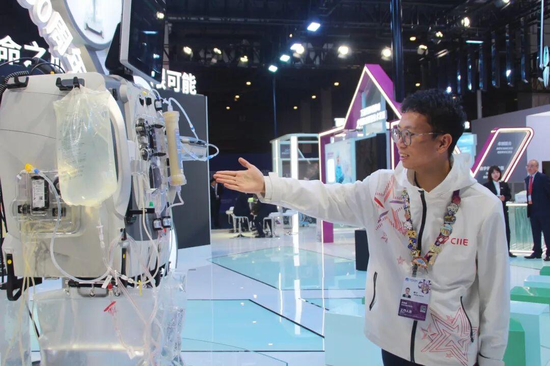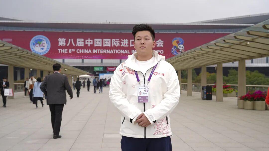 来自上海交通大学医学院的一年级“小叶子”樊宁服务于进博会的医疗展区,这里汇聚了全球医学科技与创新的前沿成果。他曾在临床上接触过母婴健康和膳食补充剂相关的科研项目,也曾参与相关课题研究,因此格外关注进博会医疗展区营养板块各类前沿展品背后的创新理念。对樊宁而言,参与此次进博会,不仅是一场志愿服务的成长之旅,也是一次宝贵的专业实践体验。