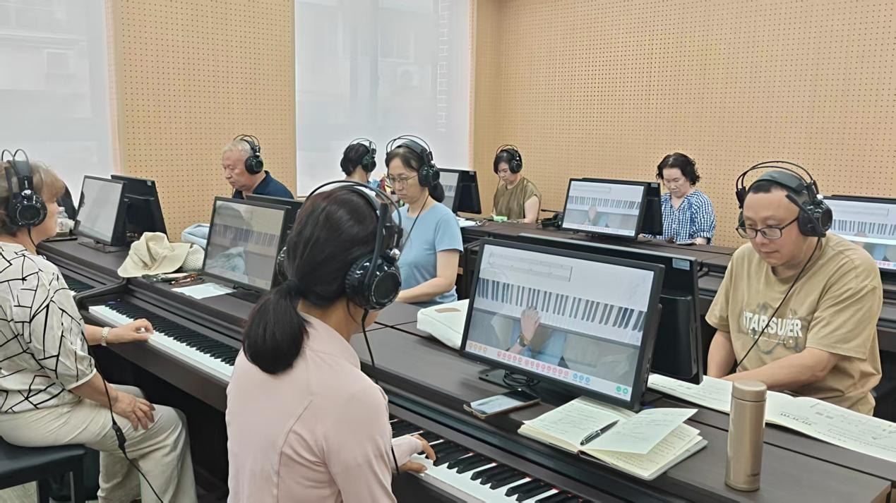 在传统与科技的碰撞中,普陀区老年大学紧扣老年需求,构建六大领域核心课程体系,艺术人文、运动养生、智能科技等课程覆盖多元学习需求。针对不同基础学员,学校设置初级、中级、高级、研修(表演) 班分层教学,既保障零起点学员轻松入门,也为学有所长者提供精进平台。