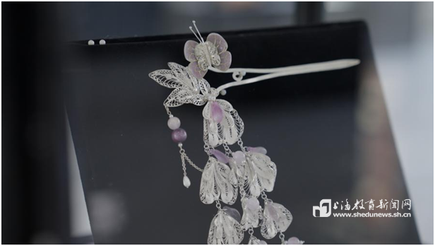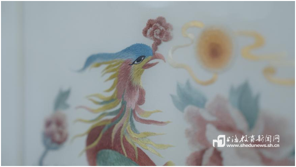 同班的加米娜·吐尔洪江,则对展览中的刺绣作品《凤穿牡丹》情有独钟。这幅由上海工艺美院刺绣大师工作室张丹奕创作的作品,以“百鸟之王”凤凰与“百花之王”牡丹为灵感,用细腻针法勾勒出七彩绚烂的“凤穿牡丹”奇景。“刺绣的细节特别好看,我很想分享给我的朋友。这些来自上海的工艺品都很好看,真想把它们都带回家。”加米娜·吐尔洪江说。