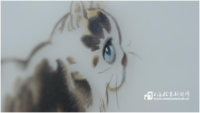 同样被刺绣吸引的还有新疆学生阿丽米热·热合曼,她印象最深的是刺绣作品《禅心》。作品上,翠绿的柳叶随风轻摆,一只夏蝉栖息枝头,左侧一只毛发蓬松的猫咪正抬头“听蝉闻夏”,画面生动有趣。“第一眼看到《禅心》,我以为是画出来的,仔细一看才发现原来是刺绣。”阿丽米热·热合曼说,“因为这个作品,我也想学习刺绣了。”