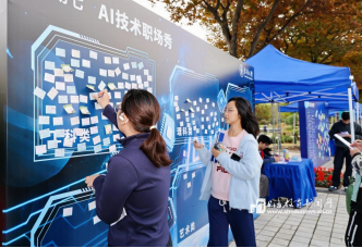下课时间刚过,生涯体验区便迅速排起了长龙。在“能力雷达站”前,学生们凝神静气,通过趣味游戏测评着自己的优势能力,不时发出“原来我这个方面这么强”的惊叹;“动力火箭号”区域则围绕职业动机展开讨论,现场气氛轻松活跃;“我是飞行员”环节引导参与者在模拟情境中探索个人决策风格,吸引众多学生驻足体验。今年新增的“AI技术职场秀”备受关注,学生们围绕人工智能技术场景与专业融合路径展开头脑风暴,积极探讨新兴职业发展方向。