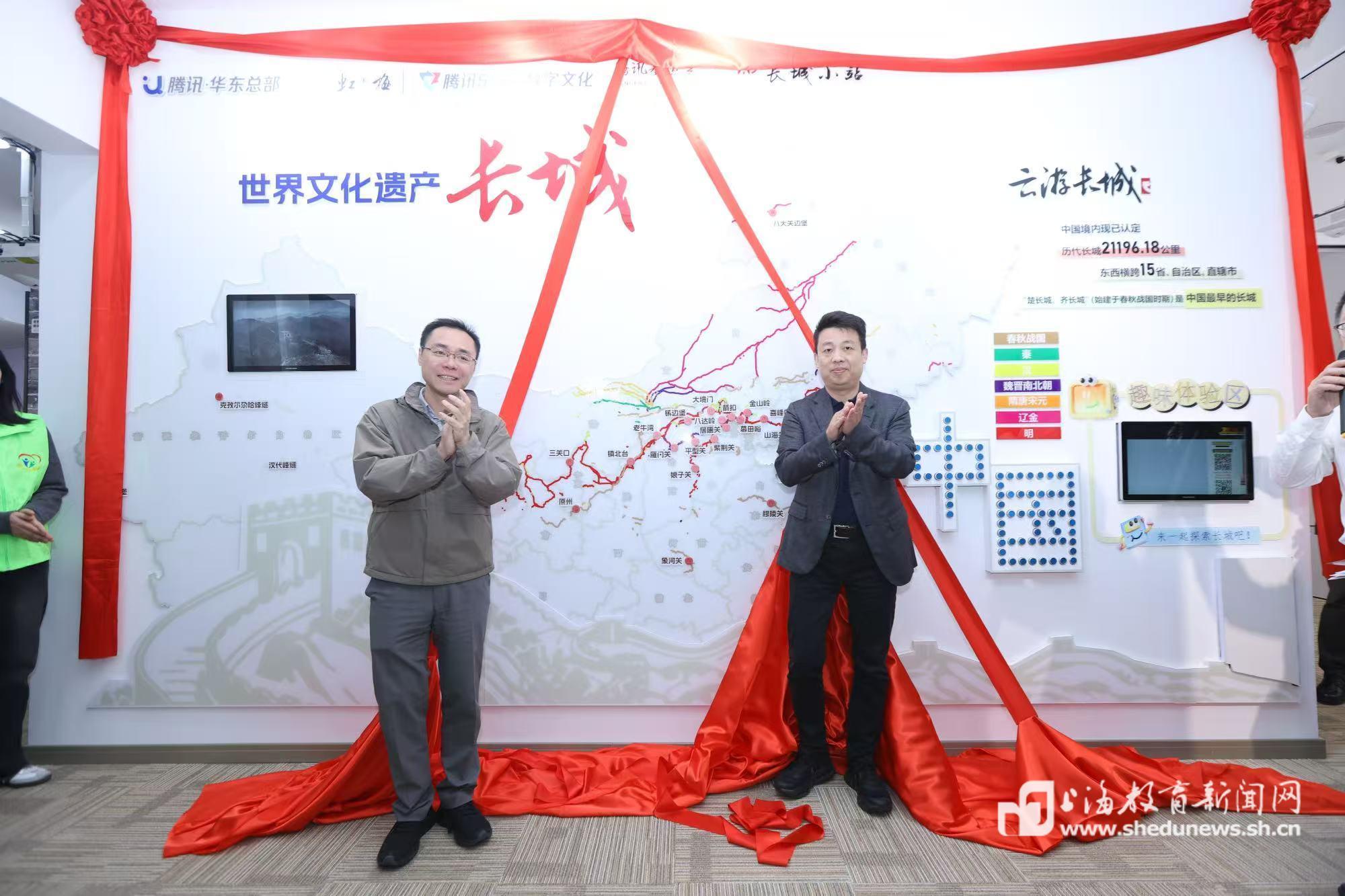 当天上午,“首日学”活动率先在2楼非遗实践体验中心开启。首批与会嘉宾沉浸式感受“海派香事”的独特魅力,近距离体验非遗香牌制作工艺,感受传统文化的深厚底蕴。体验结束后,嘉宾共同见证腾讯“云游长城”世界文化遗产数字展示中心揭幕。徐汇区虹梅街道党工委书记、人大工委主任杨震青与腾讯华东总部总经理李侃共同为中心揭牌,标志着这一融合数字技术与世遗文化传承的终身教育新地标正式启用。