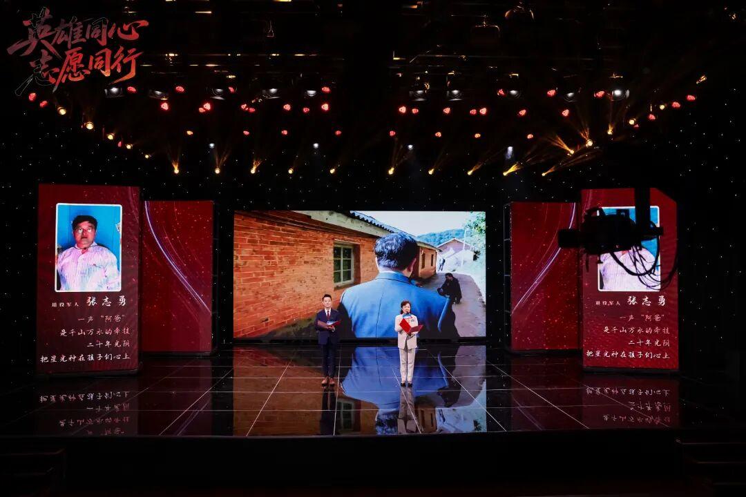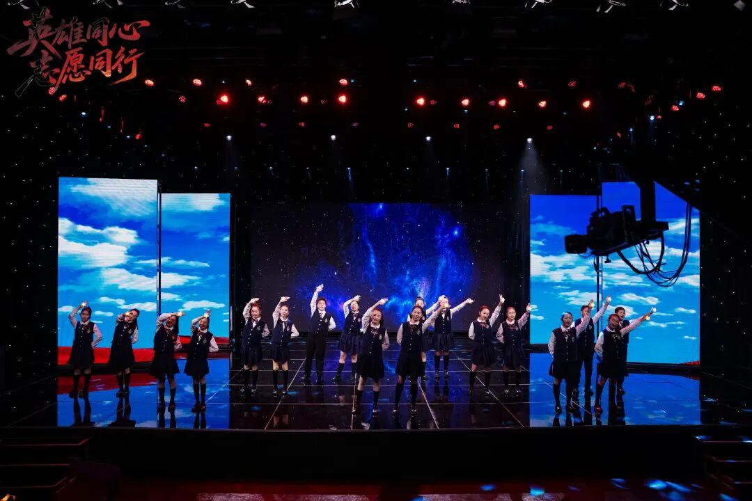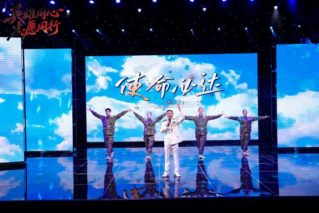 活泼有力的《英雄》舞蹈致敬老兵;歌曲《使命必达》彰显了退役军人永葆血性,为新时代添砖加瓦的冲锋斗志;舞台剧以《世界赠予我的》结尾,传达了广大人民对退役军人无私投入志愿服务的无限感恩。