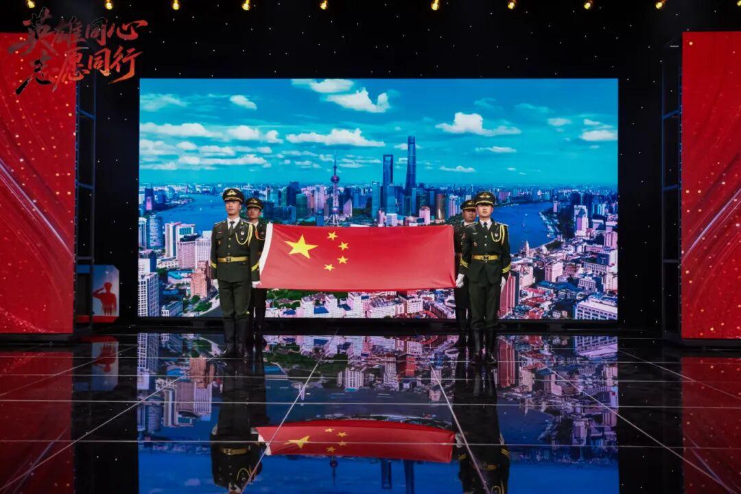舞台剧以钢铁之翼国防教育团队的擎旗仪式铿锵开场,点亮全场首个聚光时刻。这支团队由三军仪仗队、国旗护卫队、武警特种部队的退役军人组成。截至目前,团队已完成超2000次国防教育和仪式展演活动,获评上海“最美退役军人”集体称号。