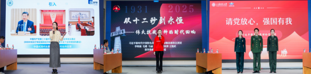 经过评委现场打分评选,习近平生态文明思想专论课程宣讲团课程“峡谷藏秀·布依风情绘生态新篇”、习近平新时代中国特色社会主义思想概论课程宣讲团课程“从十二秒到永恒——伟大抗战精神的时代回响”荣获一等奖。“弘扬教育家精神”个论课程宣讲团课程“师者何为?灯火长明照初心——从廖世承教育情怀看师者使命担当”、习近平强军思想专论课程宣讲团课程“以青春赴使命,以强军护强国”、党的青年工作个论课程宣讲团课程“以青春之我,赴西部之约——以教育微光筑梦强国”荣获二等奖。习近平文化思想专论课程宣讲团课程“文旅‘破圈’的核心密码:让文化服务贴地而行”、习近平经济思想专论课程宣讲团课程“从‘大国重器’到‘大国工匠’:让青年的蓝天之梦照进中国经济的时代蓝图”、习近平法治思想专论课程宣讲团课程“城市心脏的‘小法庭’,守护黄浦江畔的‘大民生’”以及习近平外交思想专论课程宣讲团课程“进博行动:构建人类命运共同体的中国实践”荣获三等奖。