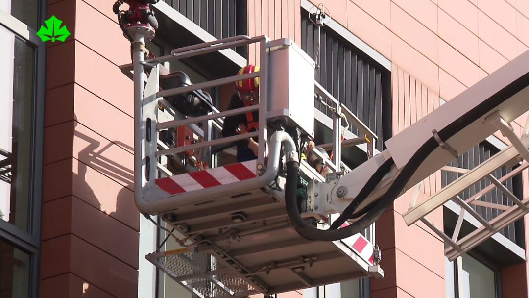 消防队第一时间抵达现场,组织灭火,并利用云梯解救被困师生。