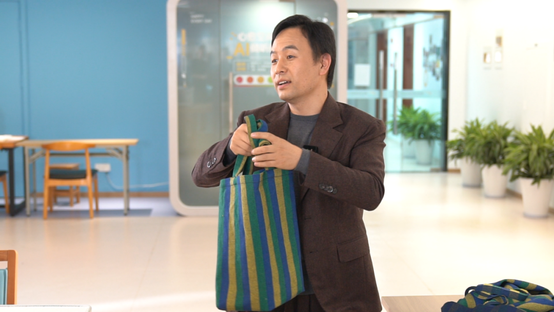 课程中,张臣从认识缝纫机、穿线技巧、剪刀使用等基础知识点入手,以“0帧起手”耐心指导,带领5位老年学员一步步探索裁剪缝纫的乐趣。量尺寸、画版型、剪布料、踩缝纫机……在老师的细致讲解和手把手示范下,学员们从“零基础”逐步上手,最终成功完成了随身帆布包的裁剪与缝纫,成就感满满。