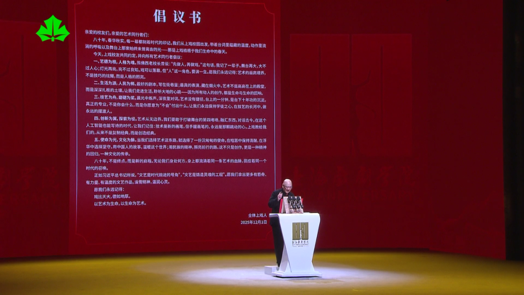 建校80周年之际,上戏也向全体师生校友发起倡议,让“德艺双馨”成为毕生追求。
