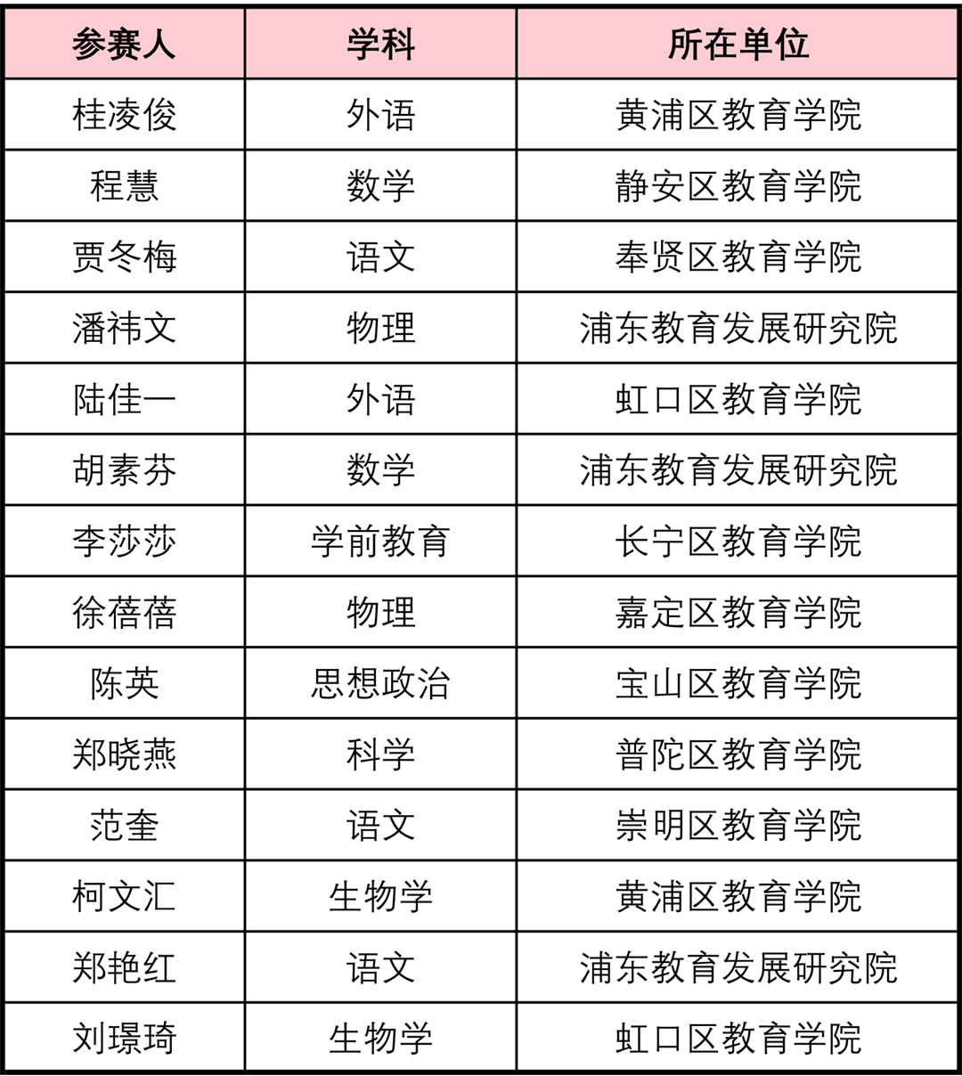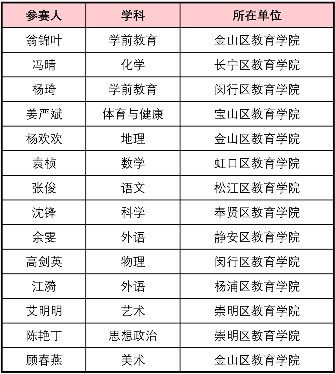 “2025年上海市基础教育教研员专业发展比赛”经专家独立评审、学科分组评审组讨论,总评委会确认,最终评选出拟获一等奖14个、拟获二等奖19个、拟获三等奖14个。现将拟获奖名单公示如下: