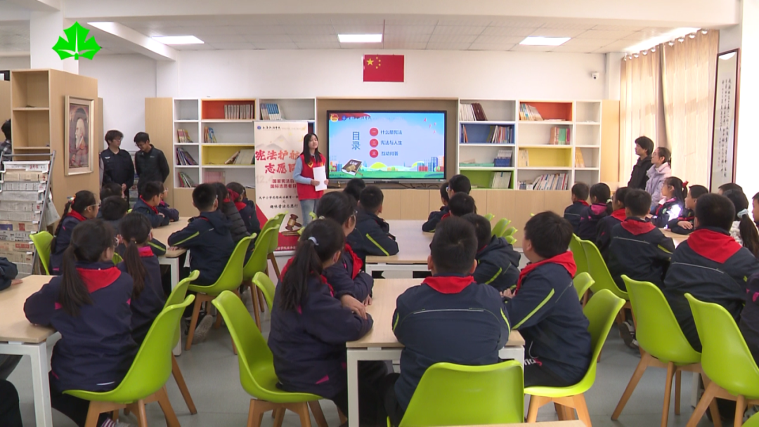 在上海政法学院附属东门小学,普法宣讲团的学生们以“宪法伴我们一生”为主题,用通俗易懂的语言阐述了宪法作为国家根本大法的重要性,引导小学生们认识到宪法与每个人的密切关系。活动现场,大、小学生还共同演绎了校园普法剧,通过身边的案例,帮助同学们理解权利与义务的边界。