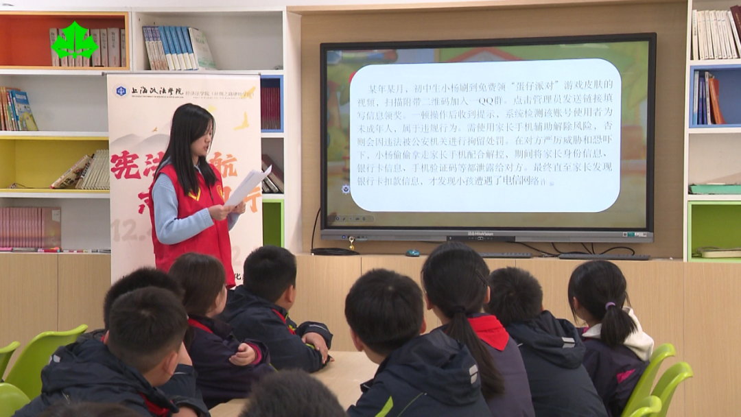 为弘扬宪法精神,提高青少年法治意识,近日,上海政法学院经济法学院组织学生普法宣讲团,走进青浦、松江等地的中小学,开展“宪法护航 志愿同行”趣味普法活动。