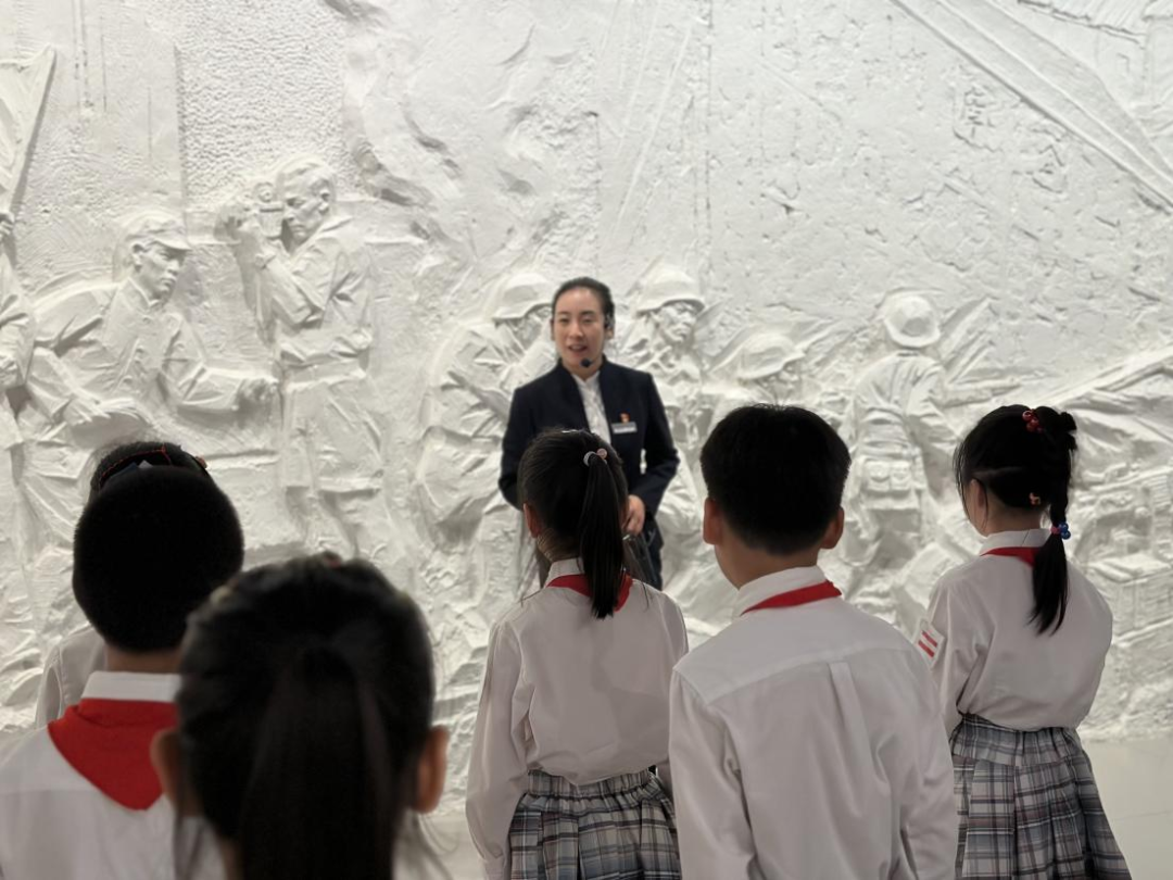上海坚持开门办思政课。图为宝山区实验小学学生观摩上海淞沪抗战纪念馆。
