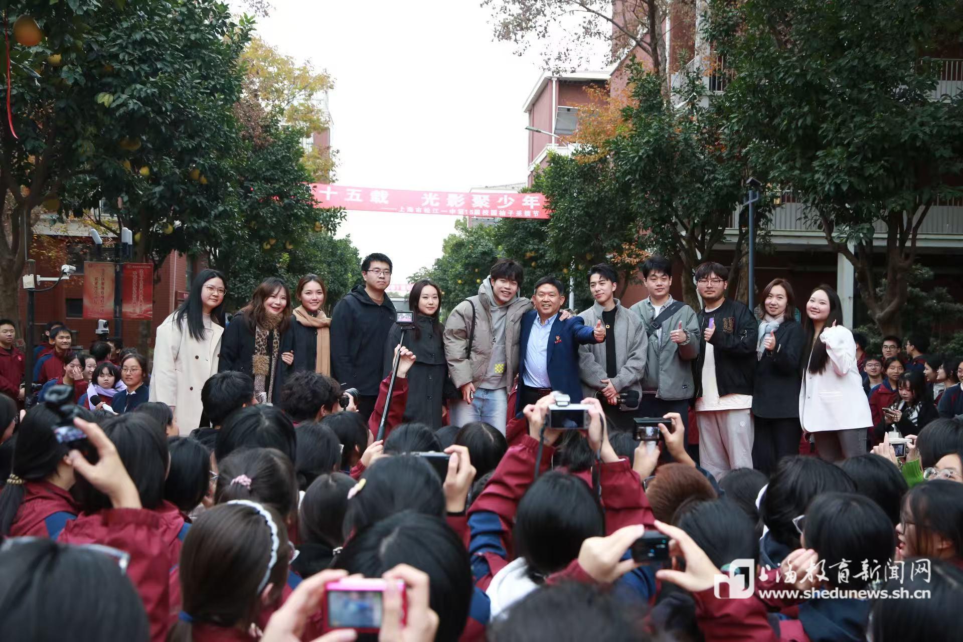 12月12日下午,松江一中第十五届柚子节如约而至。与往年不同的是,今年校园里多了一群特殊的身影——十年前拍摄校园微电影《我在柚子树下等你》的主创团队从各地赶回母校,与学弟学妹们一同分享这份独特的“柚香记忆”。更引人注目的是,被称为“柚子爸爸”的郭宁伟,在不久前以学校党委书记的身份回到这座“最浪漫校园”,还带来了一本凝结他二十余年德育智慧的新书《德育创意设计》。
