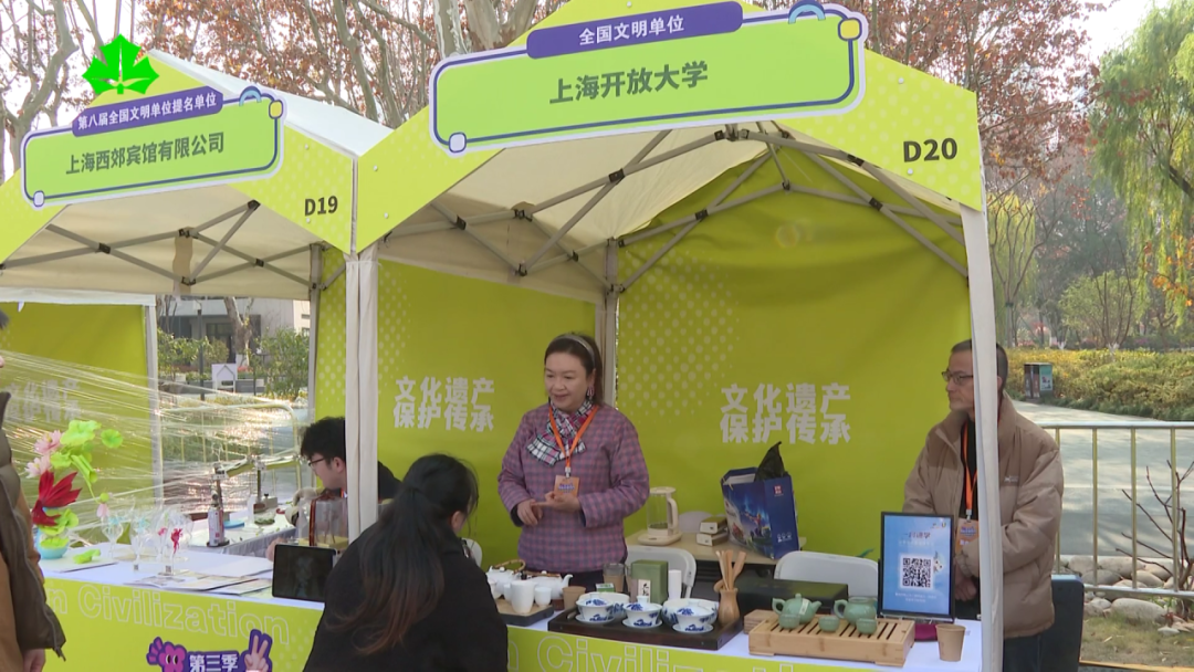 活动现场,全国文明单位上海开放大学为市民朋友们带来了兼具生活气息和传统文化的茶艺展示。作为致力于服务市民终身学习的学校,上海开放大学让市民体验非遗茶艺文化魅力的同时,也为他们提供了更多的学习机会。