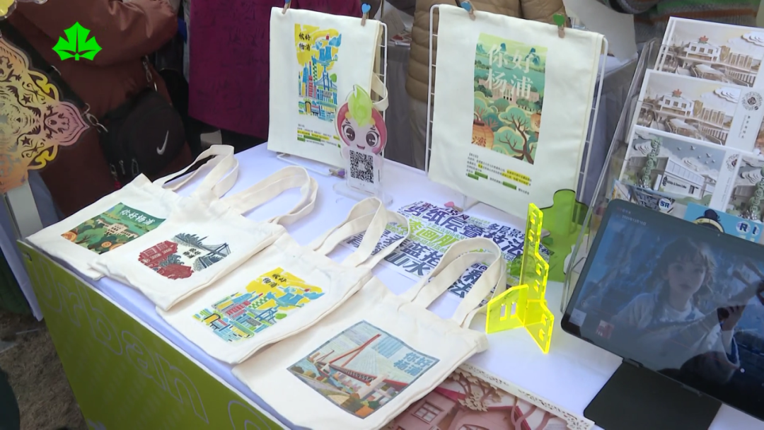 不仅有文化类体验,也有科技融入生活的生动展现。在杨浦区少年宫展台,老师们就带来了平日里同学们运用AI、AR等现代技术手段创作的杨浦城市图片、明信片等等,并让市民们通过热转印现场制作别具个性化的帆布袋,吸引了不少市民驻足体验。