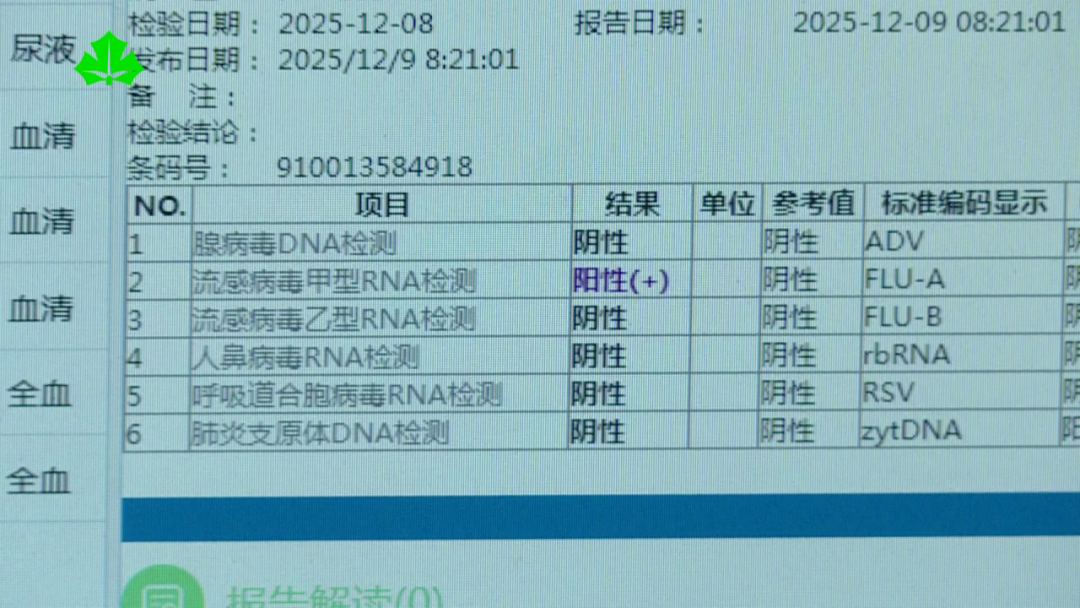 进入12月以来,上海市公共卫生临床中心流感病毒阳性率持续攀升,5至14岁患儿占到了所有流感确诊病例的三分之二,其中又有近70%的患儿存在病原体混合感染的情况。6岁的然然5天前因支原体肺炎入院,治疗第二天经核酸检测确诊同时感染了甲型H3N2流感病毒。