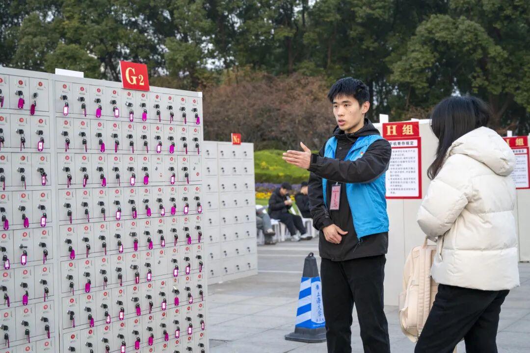 上海杉达学院设手机专用寄存区并配专人管理,组建志愿者服务队全程引导入场、答疑解惑。