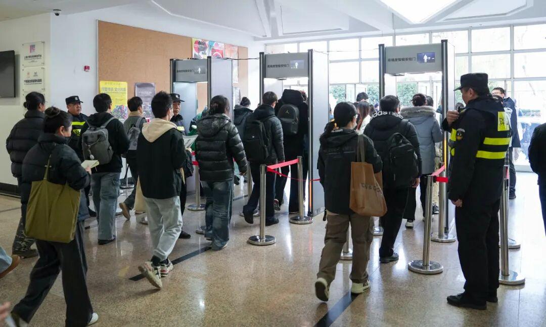 上海建桥学院配备专人在安检区域值守与巡查,制定完备应急预案,全力保障考试平稳进行。