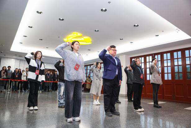 在中共一大纪念馆的现场教学中,学员们参与“在国旗下成长”仪式教育,观摩诗朗诵《红 1921》《初光》等现场展演,接受富有仪式感的精神洗礼。中共一大纪念馆・上海大学国家革命文物协同研究中心协同办公室主任、研究馆员张玉菡作为负责这一历史时期导学的全时导师,以《中共一大纪念馆策展里的诞生地故事》为题,从策展人视角,带领学生了解基本陈列《伟大的开端:中国共产党的创建历史》背后的策展故事,让展览里的诞生地故事“活起来”。