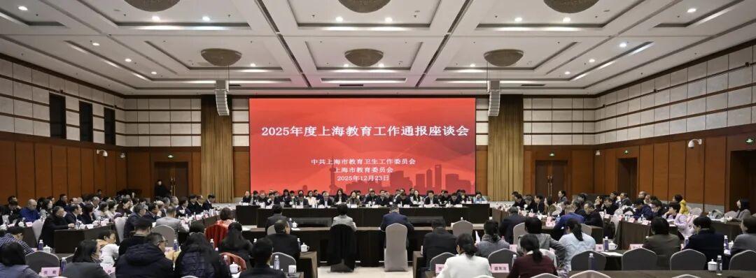 12月23日下午,市教卫工作党委、市教委召开2025年度上海教育工作通报座谈会。市教卫工作党委书记江帆主持会议。市教委一级巡视员陈睦结合代表委员2025年建言献策落实情况,通报一年来上海教育工作取得的主要进展和2026年主要考虑。市教卫工作党委副书记顾红亮,市教委副主任、总督学刘玉祥,市教委副主任杨振峰、叶霖霖、赵震、栾宗涛出席会议。