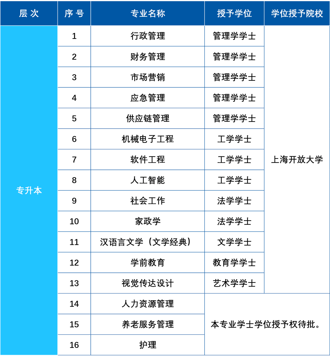 注:学士学位申请办法以上海开放大学和国家开放大学当年颁布的有关规定为准。