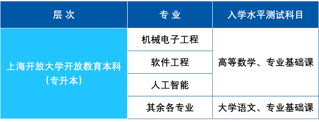 根据学校规定,报读上海开放大学开放教育本科(专升本)的学生,应参加由上海开放大学统一组织的入学水平测试。测试网址:http://zhaosheng.sou.edu.cn(进入“入学水平测试”栏目)。