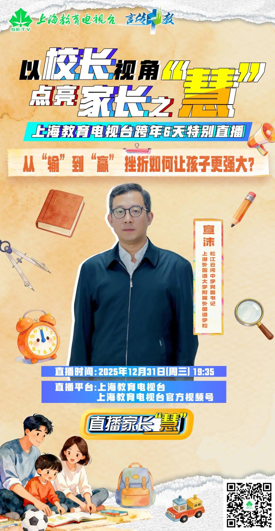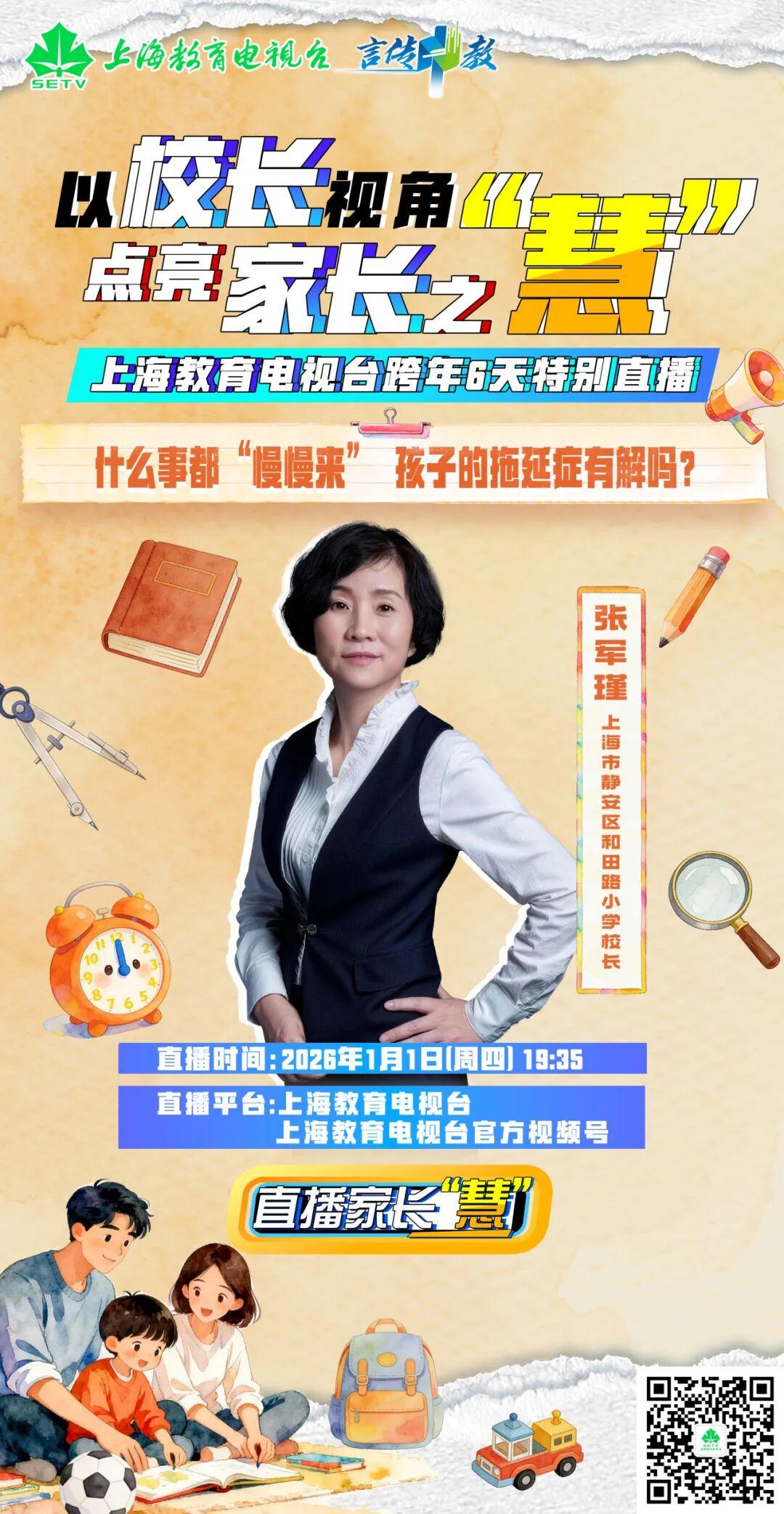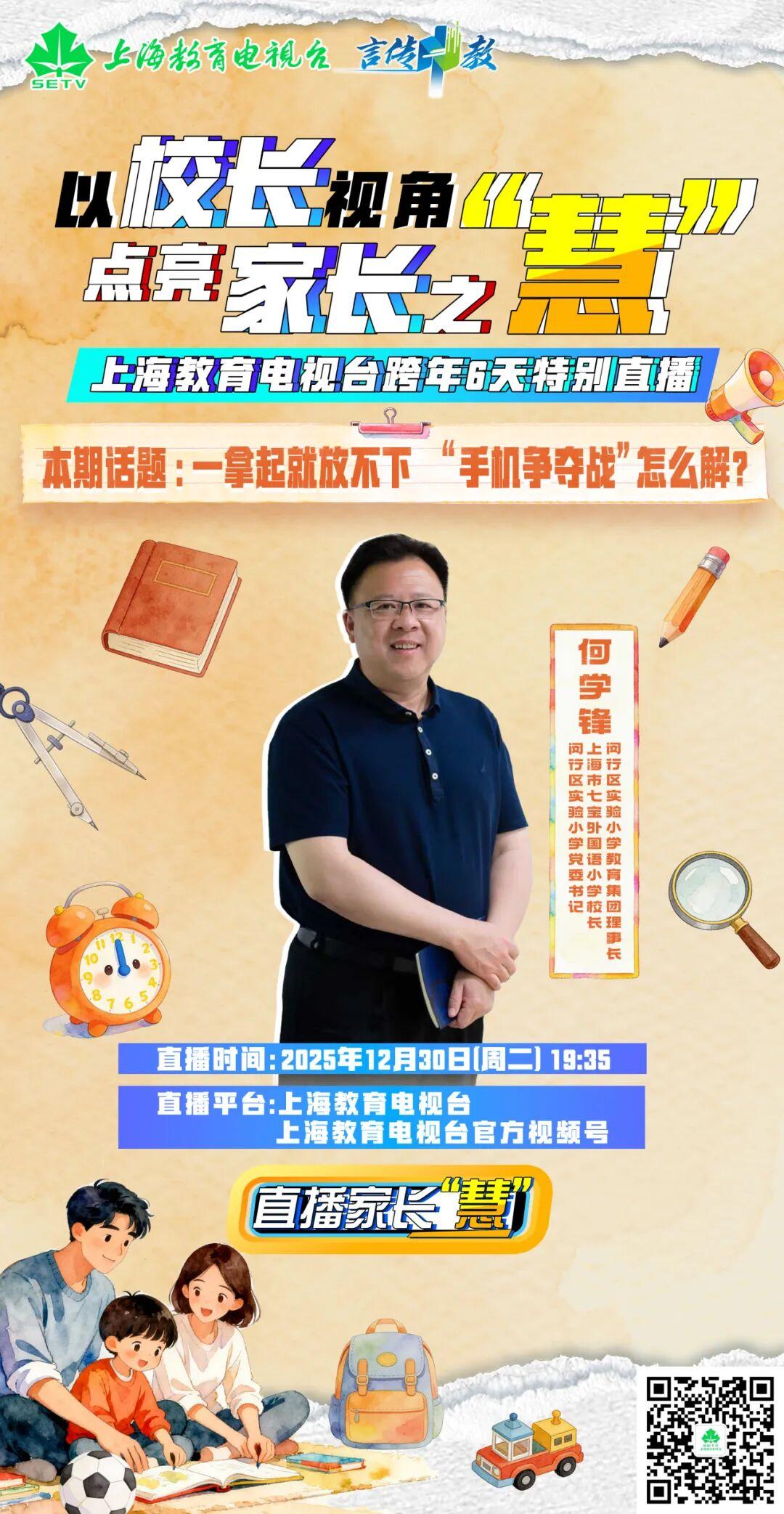 2025年12月30日至2026年1月4日,上海教育电视台家庭教育栏目《直播家长“慧”》再度推出跨年特别直播节目。连续六天,每晚19:35黄金时段,沪上6位知名中小学校长将坐镇直播间,与市教科院王枫老师一起,针对当下家长最关切的育儿难题,深入剖析根源、提供应对策略、给予专业支持,助力构建和谐亲子关系。