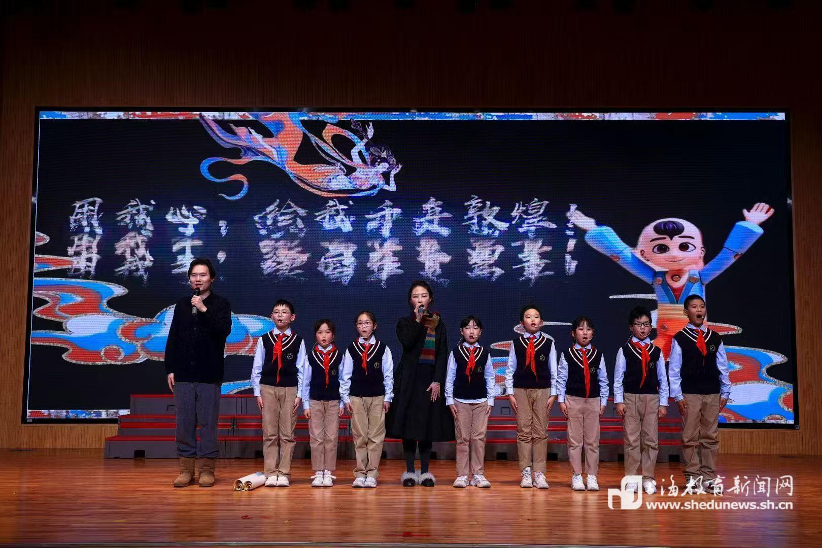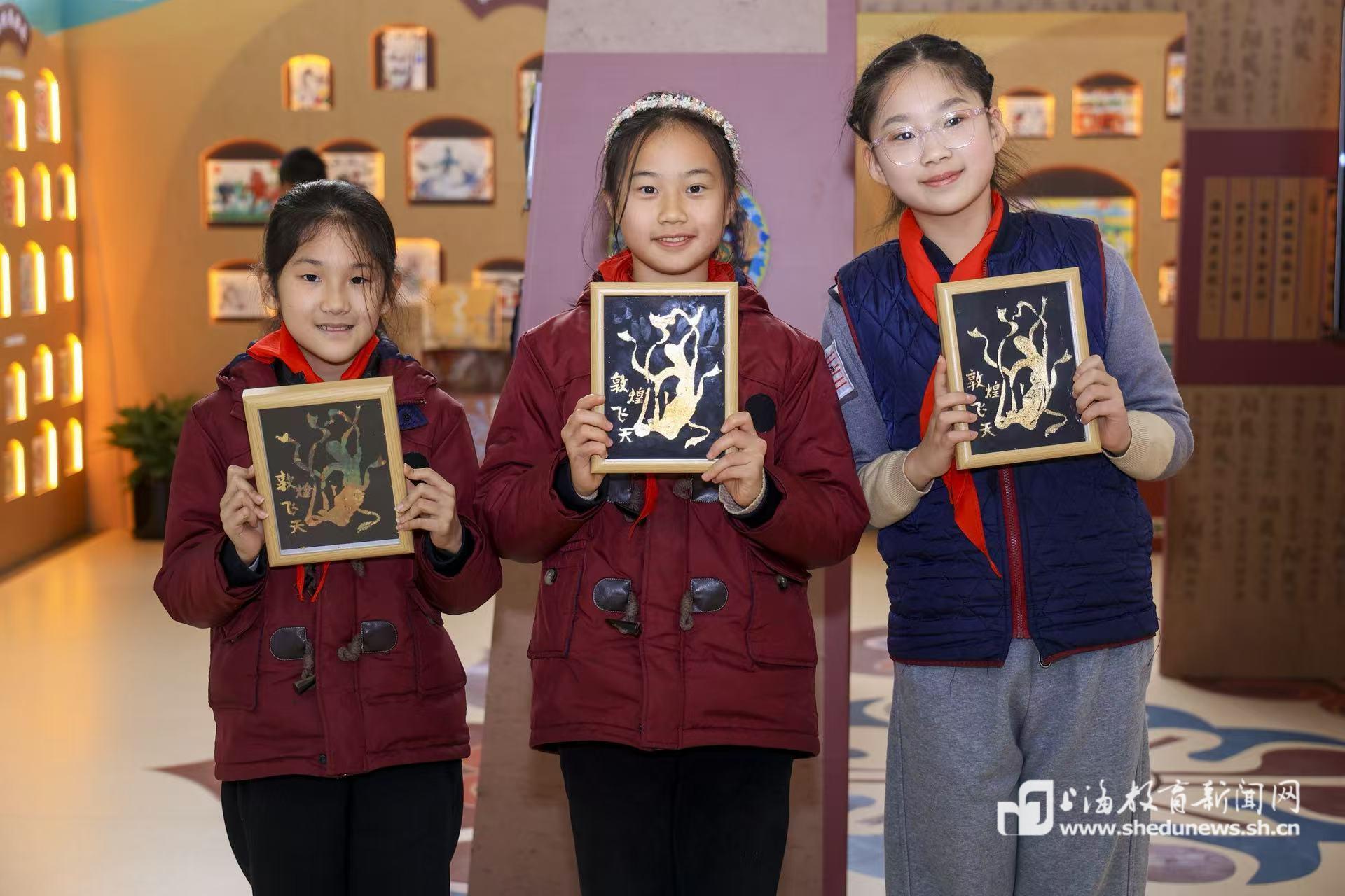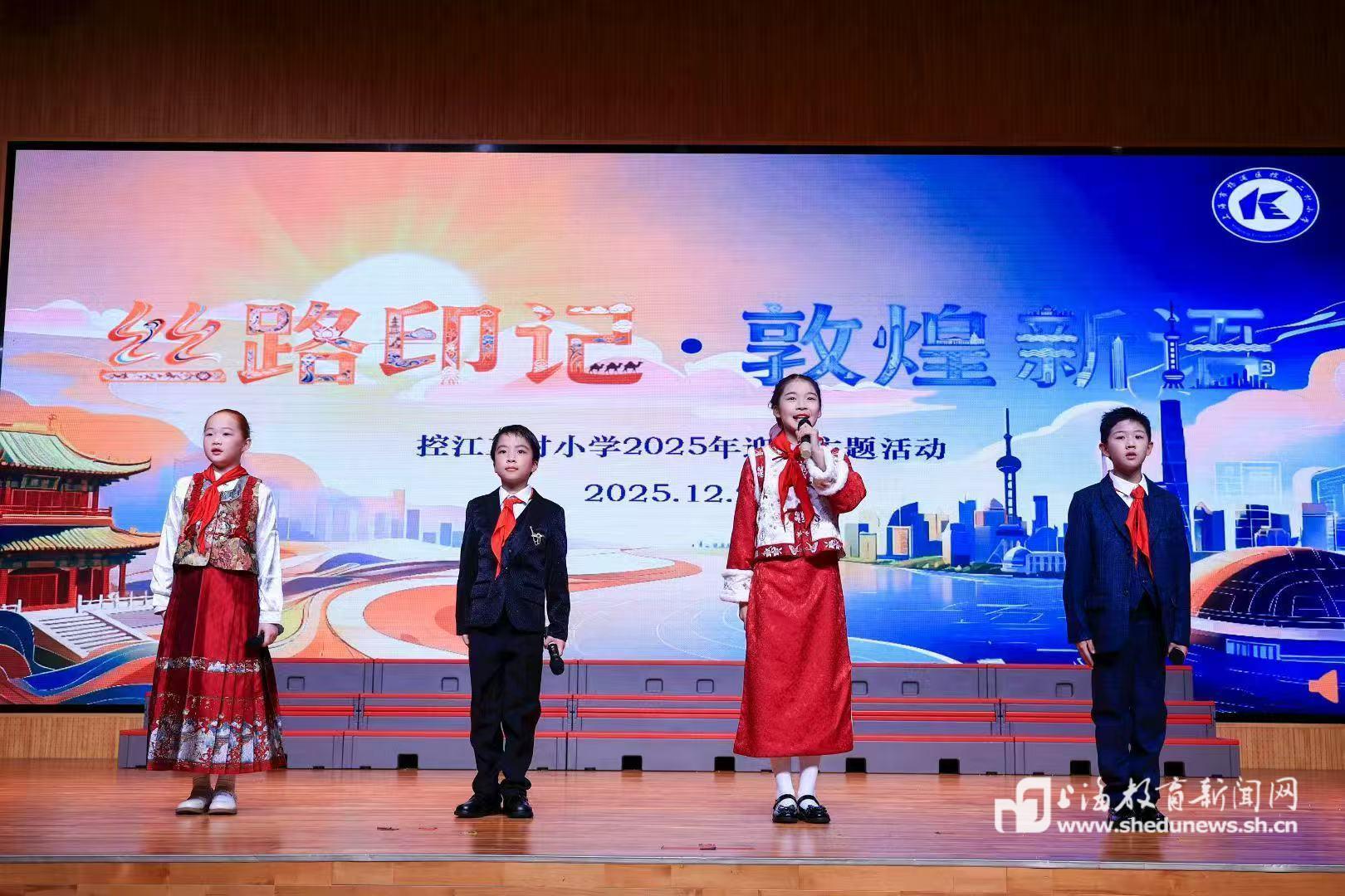 本网讯(记者 程媛媛)清脆的驼铃声在教学楼走廊回荡,绚丽的敦煌色彩点亮了冬日的校园。12月29日,一场别开生面的文化盛宴在控江二村小学温暖上演——以“丝路印记·敦煌新语”为主题的迎新活动,通过仪式展演、非遗体验、科创互动等多维形式,引领学生在触摸文明脉络中筑牢文化根基,在亲手创造中激活传承基因。