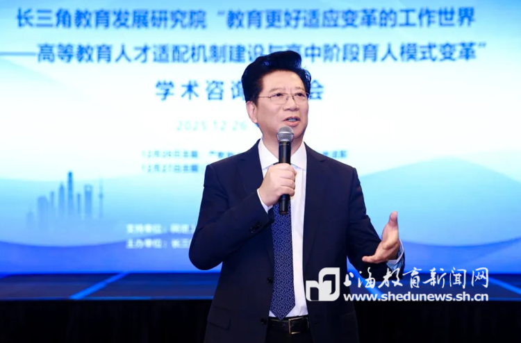 为深入贯彻落实党的二十届四中全会关于“一体推进教育科技人才发展”的战略部署,凝聚政产学研用多方智慧,共同探索教育与变革工作世界的适配机制和路径,长三角教育发展研究院“教育更好适应变革的工作世界——高等教育人才适配机制建设与高中阶段育人模式变革”学术咨询交流会于12月26日、27日在上海嘉定召开。民进中央副主席、上海市委主委黄震,民进中央副主席何志敏出席会议并讲话。上海市教育委员会副主任王浩;上海师范大学党委常委、副校长康年出席会议并致辞。