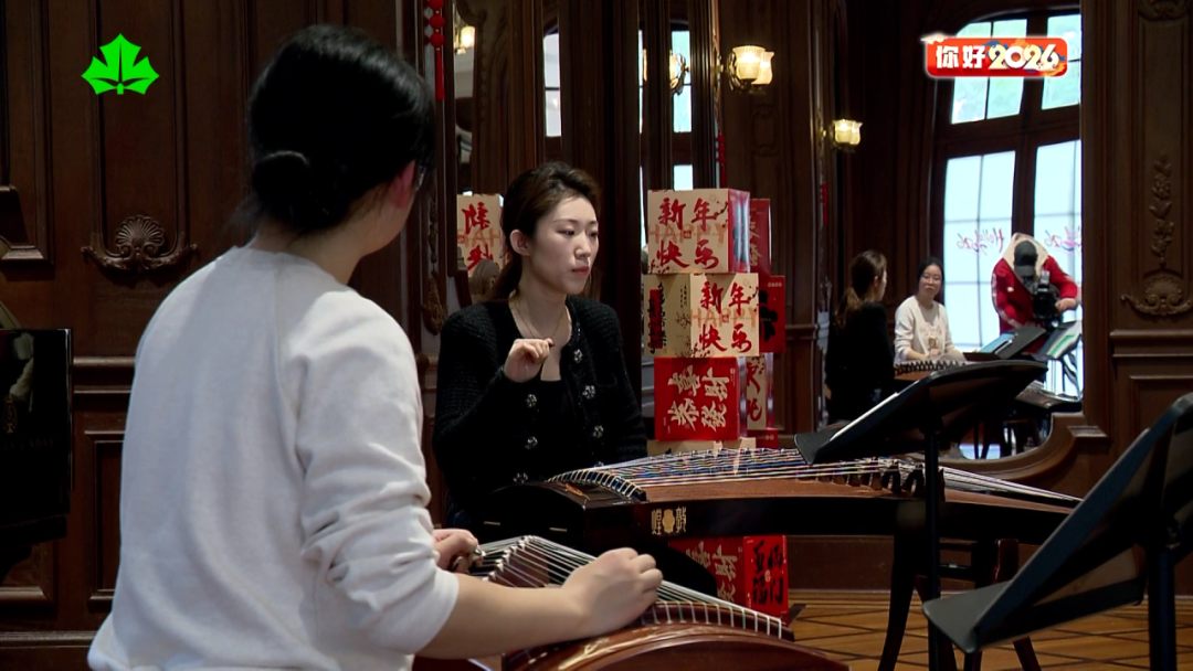 在上海音乐学院音乐城堡,以《庆典》为名的原创民乐合奏响起。来自上音学生志愿者服务队的成员们,用欢快的古韵旋律,带来新年的美好祝福。