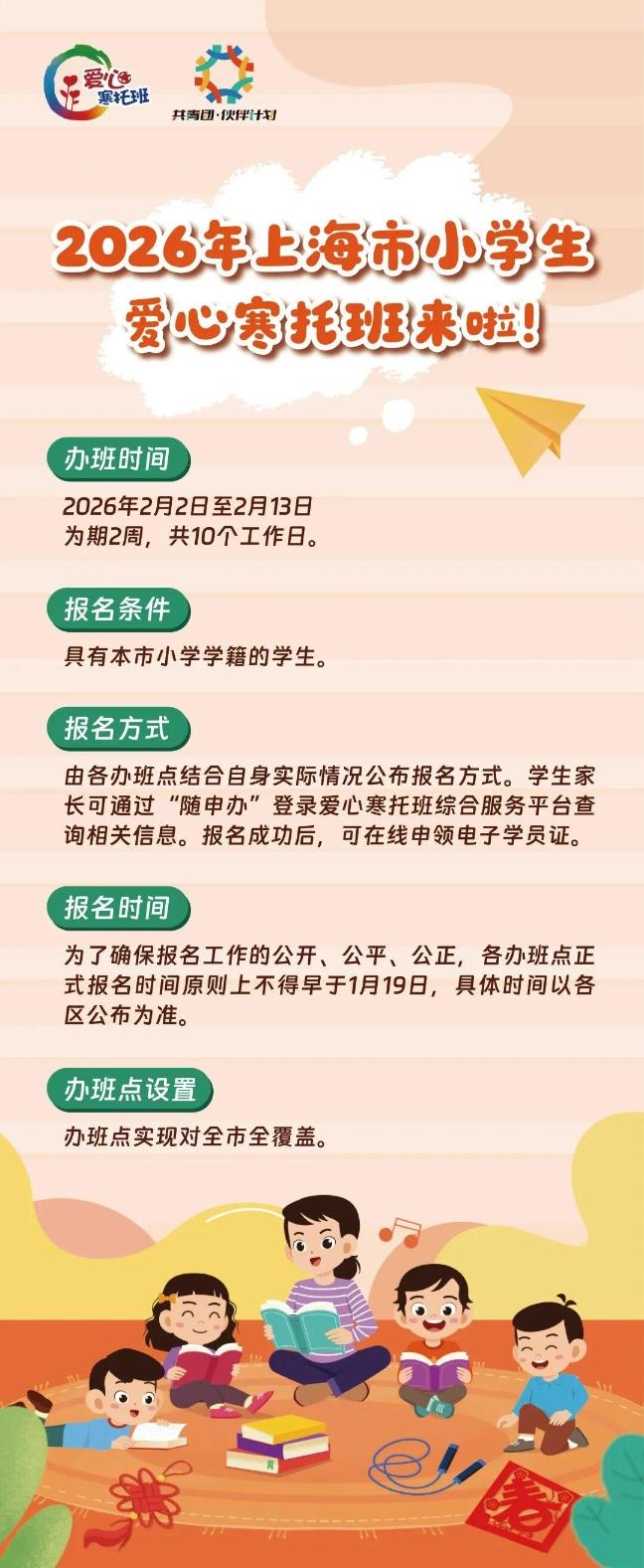 团市委、市教委介绍,寒假的脚步越来越近,还不知道让孩子去哪里?好消息来啦!2026年上海市小学生爱心寒托班即将启动报名!