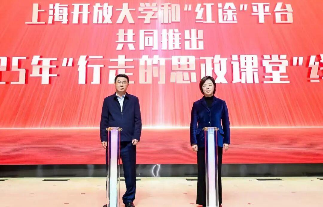 上海开放大学党委书记闵辉和市委宣传部宣教处处长王磊共同开启2025年“行走的思政课堂”线路
