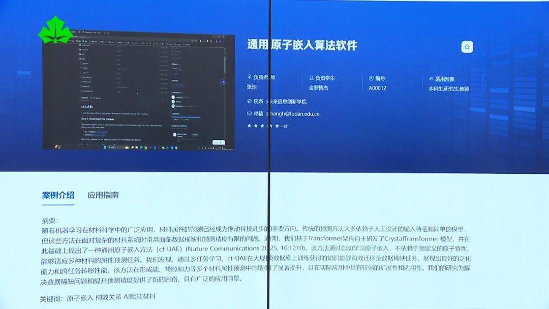 在复旦大学,物理学系研究生杜子健,正在展示他和老师一起开发的“通用原子嵌入算法软件”。借助这一模型,这支师生团队已经从两万余种候选晶体结构中,找到了数十种具备合成可行性的全新材料。