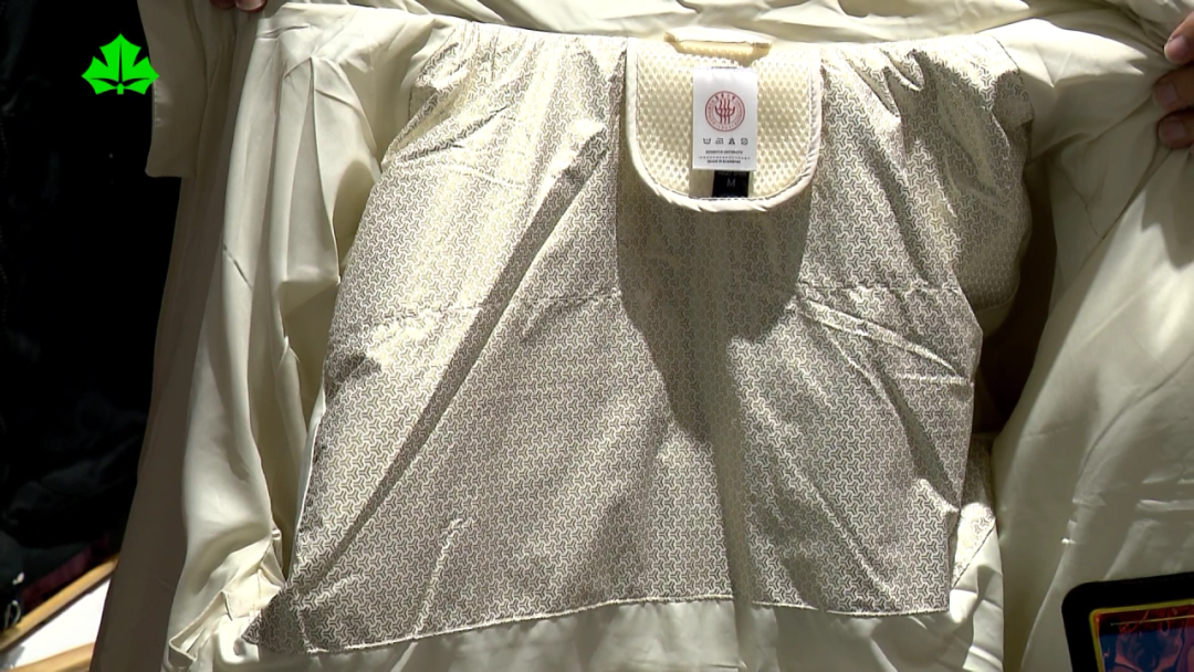 东华大学文绮书店文创及活动运营经理孟亦菲介绍,羽绒服使用新国标90鸭绒(绒子含量达90%),背面部分采用石墨烯黑金面料,有助于锁住身体的热量,此外,衣服内里还增加了温控功能。