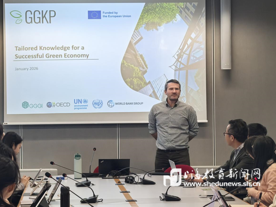 在联合国环境规划署日内瓦环境网络(UNEP GEN),《濒危野生动植物种国际贸易公约》(CITES)项目管理主任Stavros Antoniadis、绿色产业平台负责人Hannes Mac Nulty共同为同学们授课,详解全球生态治理协同机制、非法野生物贸易管控的国际合作举措。针对当前全球净零目标推进过程中面临的技术壁垒、国家间发展不平衡等问题,同学们展开热烈追问,两位官员逐一耐心回应,并表示全球生态治理需要多元主体协同发力、青年主动参与。金融管理学院投资学专业杨蕊绮同学最为感慨的是:“以前在课堂上学习的是生态治理的理论知识,这次与国际官员面对面交流,让我真切看到全球生态治理的复杂性与紧迫性,也明白了技术创新与国际协作对于实现净零目标的重要意义。”