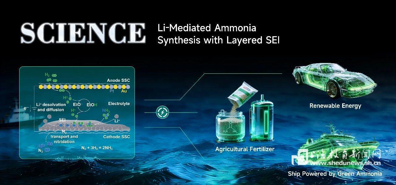 本网讯(记者 程媛媛)近日,上海交通大学变革性分子前沿科学中心李俊团队在《科学》(Science)上在线发表题为“Enhanced Li-ion diffusion improves N2-to-NH3 current efficiencyat 100 mA cm-2”的研究论文,研究团队首次报道了在常温常压连续流条件下100 mA cm-2高电流密度和21%高能效的稳定电合成氨新体系,这一新体系为绿氨规模化生产提供了颠覆性技术路径。