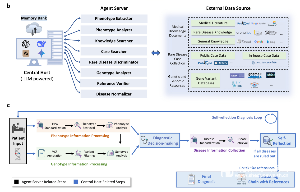 据介绍,该系统创新性地采用了“中枢-分身”架构,从三个维度实现了对传统医学AI的代际超越。DeepRare打破了数据孤岛,实时链接并整合了海量医学文献知识库与真实临床病例数据。它超越了单纯的信息检索,实现了对医学知识的深度理解与内化,相当于为每一次诊断都调动了全球最顶尖的医学知识储备。