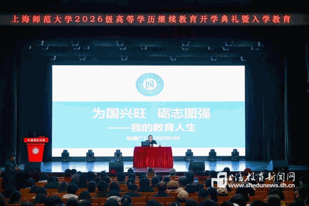 当一位终身教育家遇到一群终身学习者,会激荡出怎样的教育传承力量?3月8日,上海师范大学2026级高等学历继续教育新生开学典礼暨入学教育在音乐厅举行,并线上同步直播。全国离退休干部先进个人、全国关心下一代先进个人、第九届全国道德模范提名奖获得者、今年86岁的老校长杨德广教授为新生讲“入学第一课”。音乐厅座无虚席,8215人在线观看直播,点赞总计45270次。
