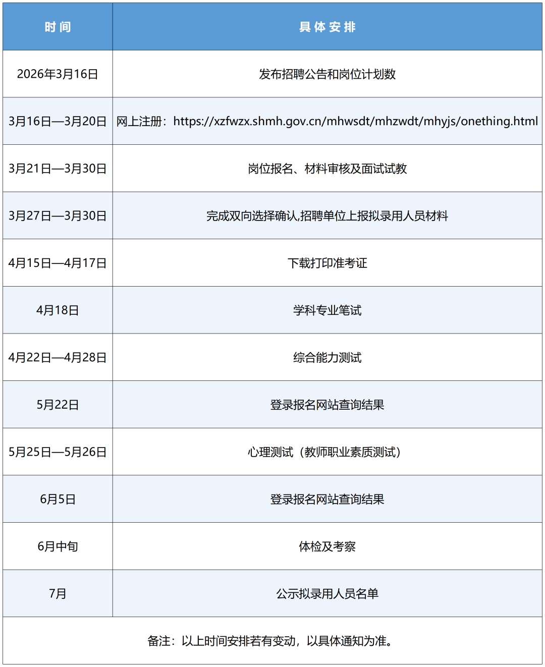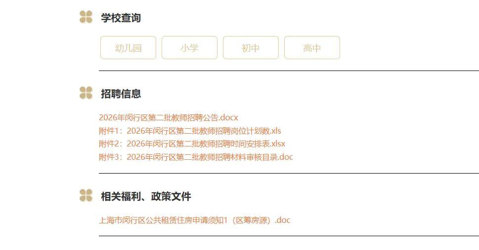 2026年3月16日,通过闵行区教育局官网和“闵行教育”微信公众号发布招聘公告和岗位需求。