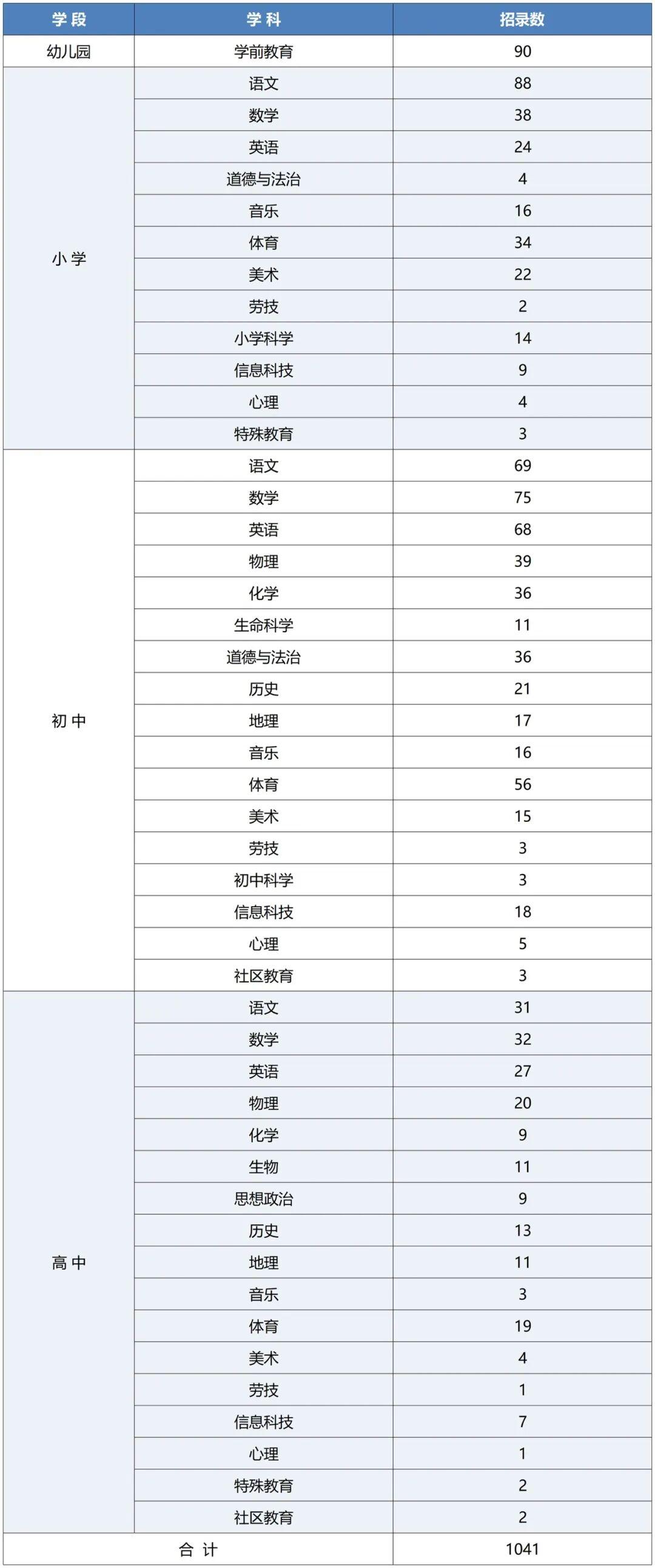 备注:在闵行区储备满三学期及以上,且每学期考核均合格的储备教师可应聘本区事业编制教师岗位,同等条件下优先考虑。