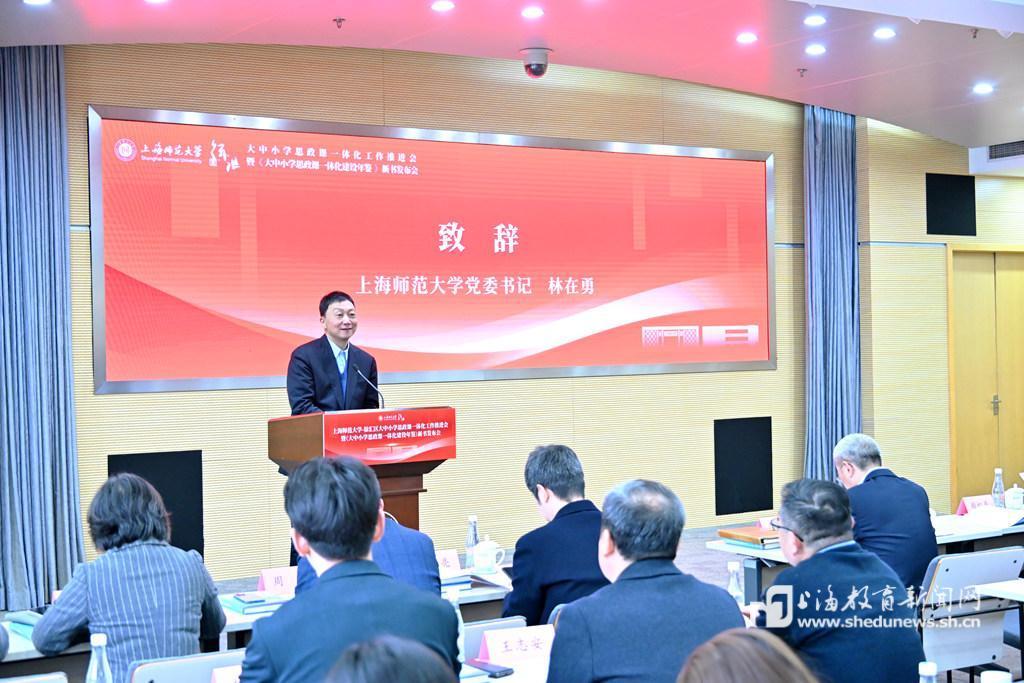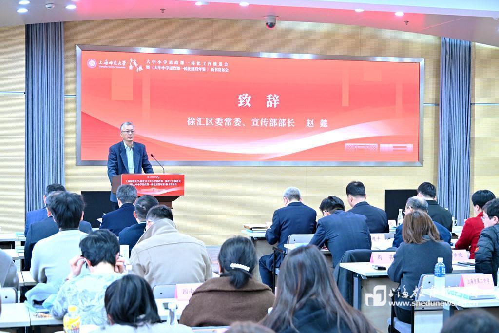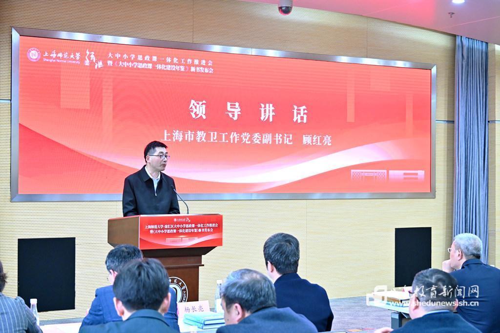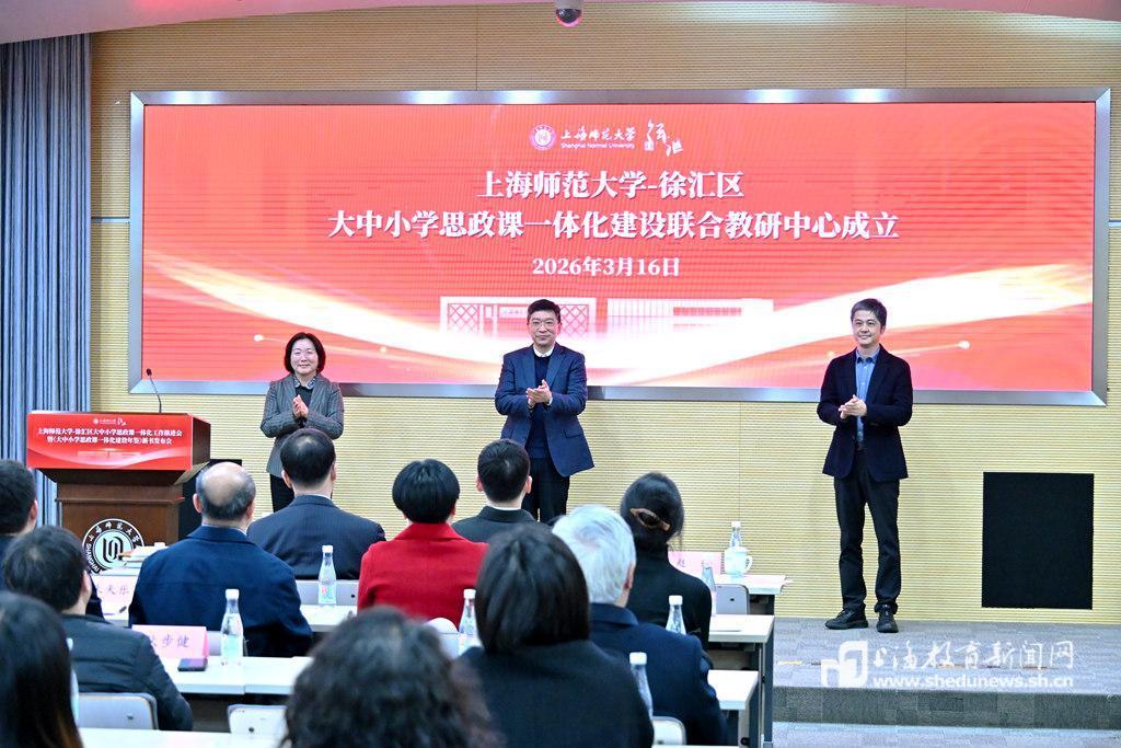 展示大思政课优质资源共建实践成果,发布2026年10项重点工作清单,成立上海市首个区校合作大中小学思政课一体化联合教研中心,发布《大中小学思政课一体化建设年鉴》……为深入实施新时代立德树人工程,扎实推进教育强国建设“一号工程”,3月16日,上海师范大学-徐汇区大中小思政课一体化工作推进会暨《大中小学思政课一体化建设年鉴》新书发布会在上海师范大学举行,明确校地协同推进思政课一体化建设的核心方向。上海市教卫工作党委副书记顾红亮,上海师范大学党委书记林在勇,徐汇区委常委、宣传部部长赵懿等领导出席会议并讲话。