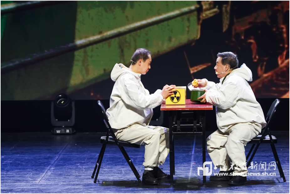 情景剧《守护》讲述了徐汇公安民警陶瑞滨,在1964年奉命奔赴青海221基地,用生命守护原子弹核心部件中子源的惊心动魄的故事。无论是火车专列上目不转睛的守护,戈壁公路上以身体缓冲颠簸的托举,还是漆黑夜晚迈着整齐口令穿越坑洼地带的护送,陶瑞滨与同事们“用命守住”国家秘密的壮举,让“干惊天动地事,做隐姓埋名人”的“两弹一星”精神变得具体而可感,当徐汇公安民警唱起《人民警察之歌》时,深深震撼了每一位观众。