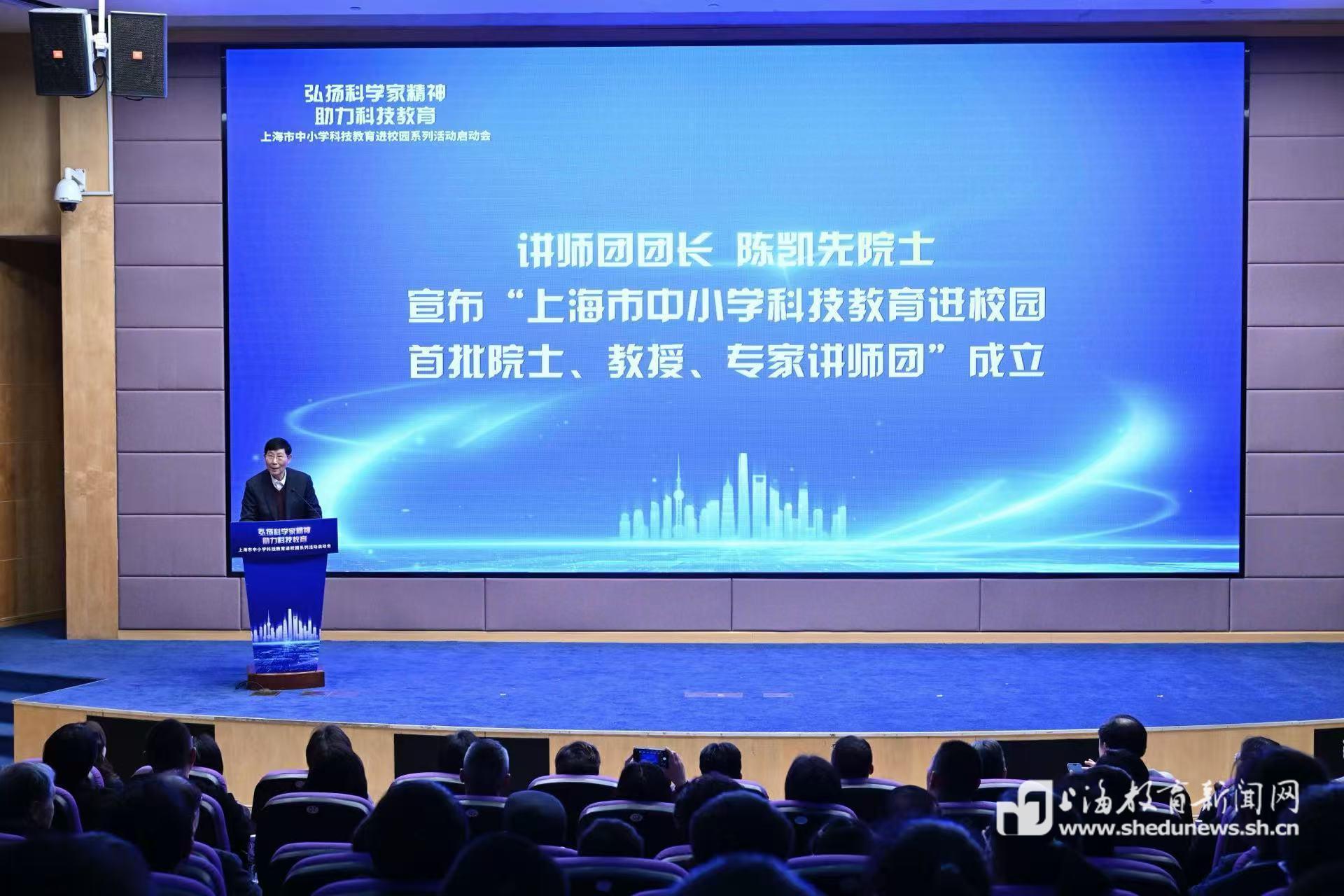 “院士、教授、专家科技教育进校园讲师团”的正式成立,成为本次启动会的一大亮点。中国科学院院士、讲师团团长陈凯先现场宣布讲师团名单。他表示,在上海市教育系统关工委的积极推动下,一批有情怀、有经验、有成就的“五老”专家主动加入讲师团,未来将以校园为阵地,通过科普讲座、实践指导、人生导航等多种形式,把科学知识、科研方法和科学精神传递给青少年,助力青少年树立科技报国的理想信念。
