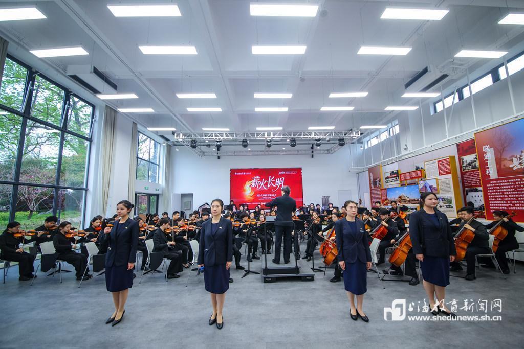 一个个跳动的音符,在跨越年龄的艺术对话中,汇聚成一堂流动的党史学习教育课。演出以《第一交响乐序曲》拉开帷幕。上海市龙华烈士陵园倪昕怡、印靖业、李雪娇、周斐然深情朗诵《你们是一部永远读不完的书》,上师大青年交响乐团弦乐声部以温暖深情的旋律徐徐铺展,共同开启这场音乐与历史的回响。