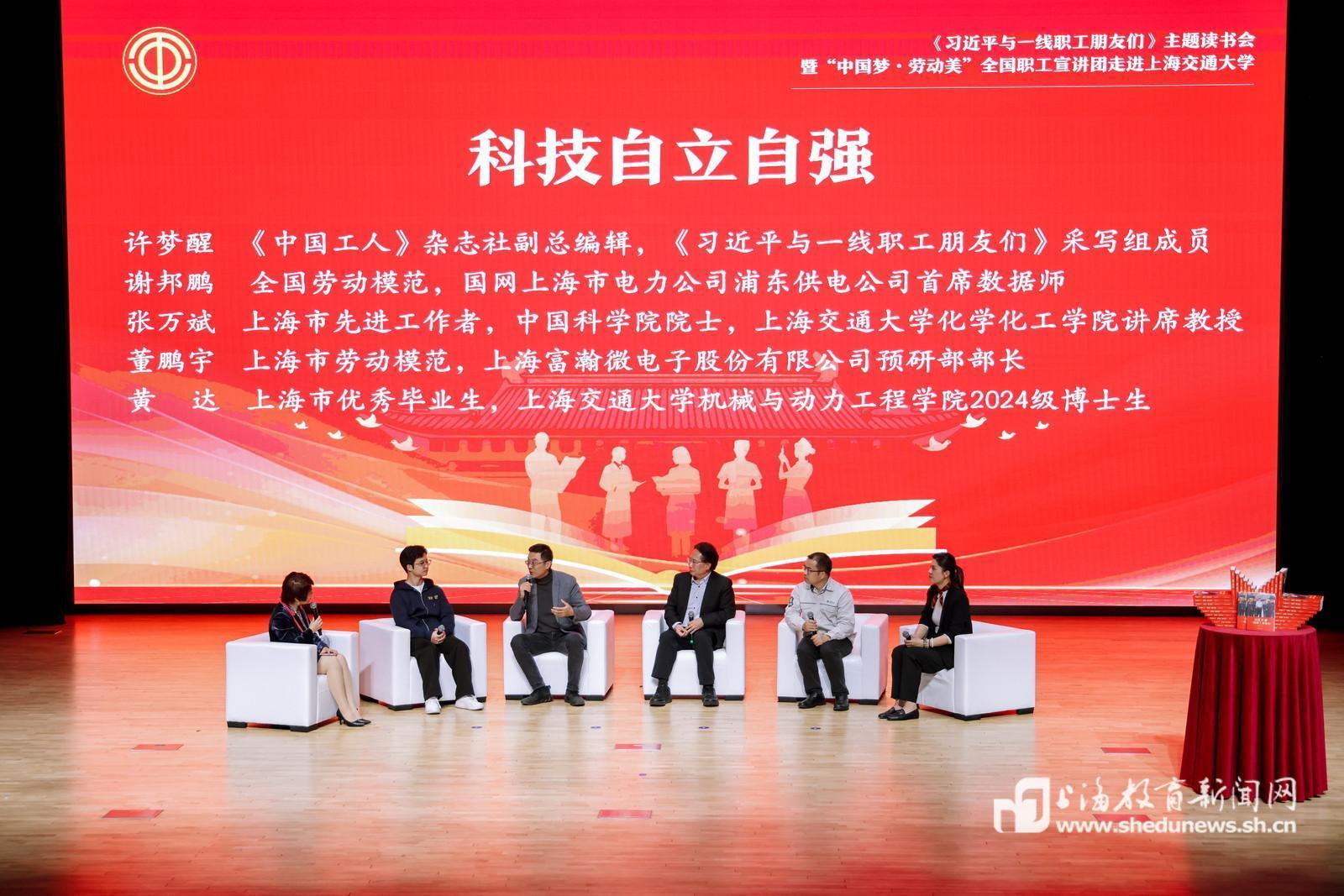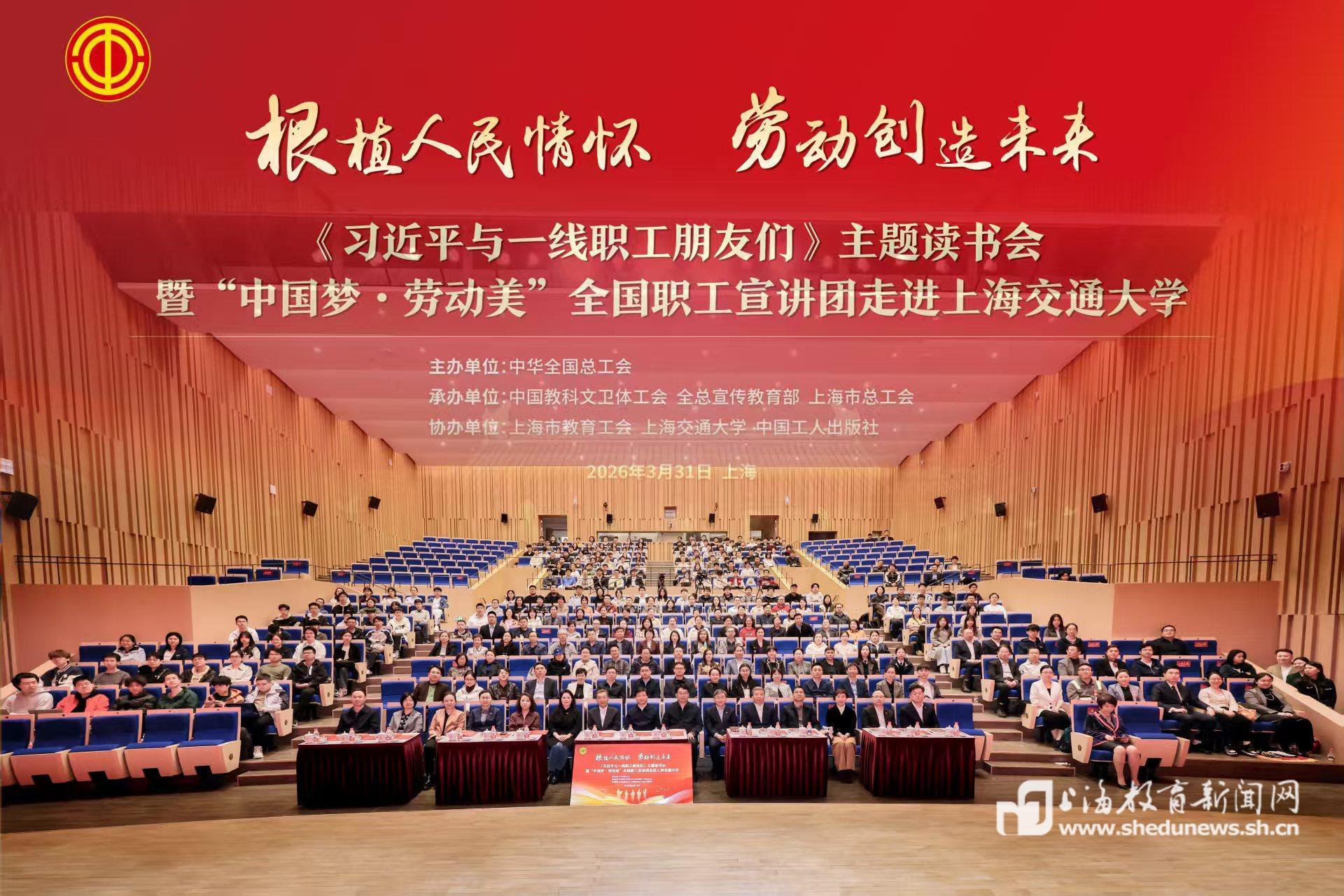 本网讯(记者 程媛媛)3月31日下午,《习近平与一线职工朋友们》主题读书会暨“中国梦·劳动美”全国职工宣讲团走进上海交通大学活动举行。全国职工宣讲团成员、书中故事亲历者、一线职工代表与上海高校工会主席、教职工代表及300余名交大学子面对面,在书香与匠心的交融中,共同感悟劳模精神、劳动精神、工匠精神,汲取奋进力量。